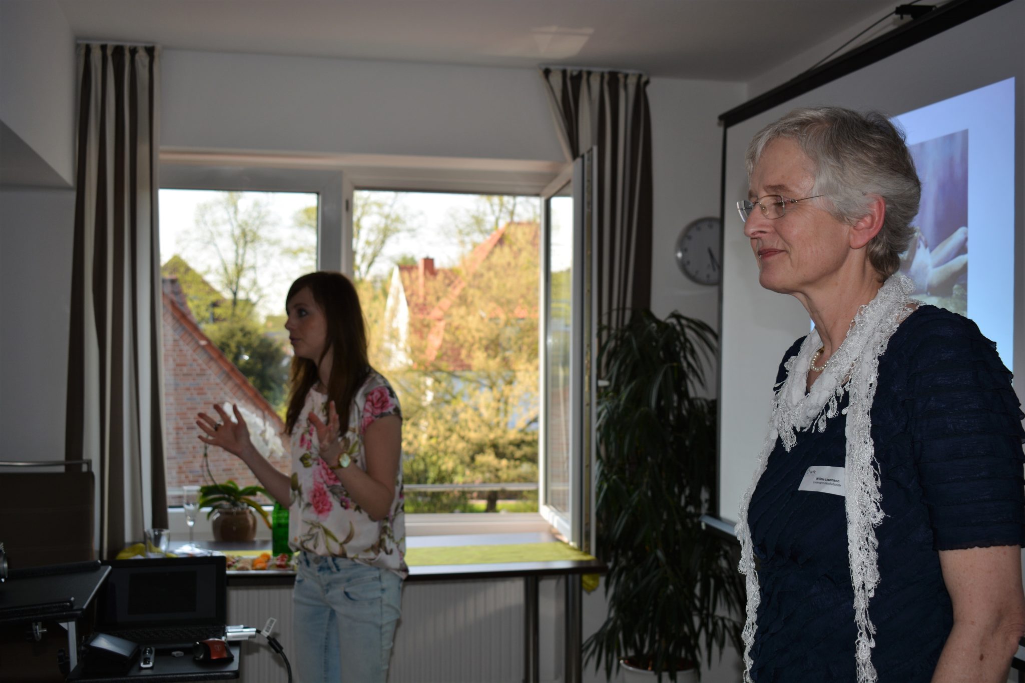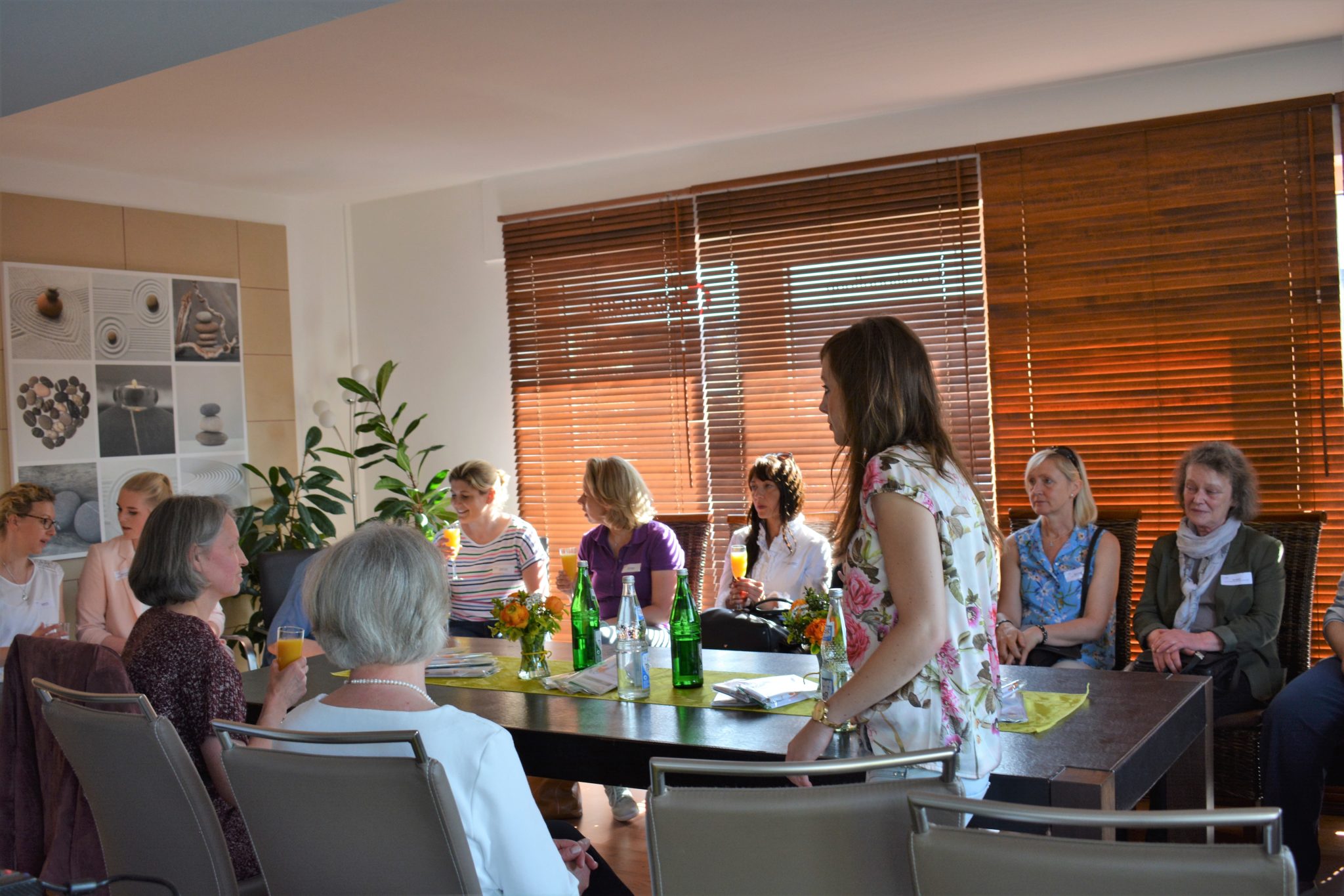 Das tolle Wetter stand den Unternehmerinnen weiterhin auf unserer Seite: Kein Wunder also, dass sich die Teilnehmerinnen des Netzwerktreffens direkt zu Fuß auf den Weg gemacht haben. Erster Zwischenstopp war bei Immobilien Hinzmann. Im Anschluss besuchte die Truppe die Firma Losemann Haushaltshilfe.