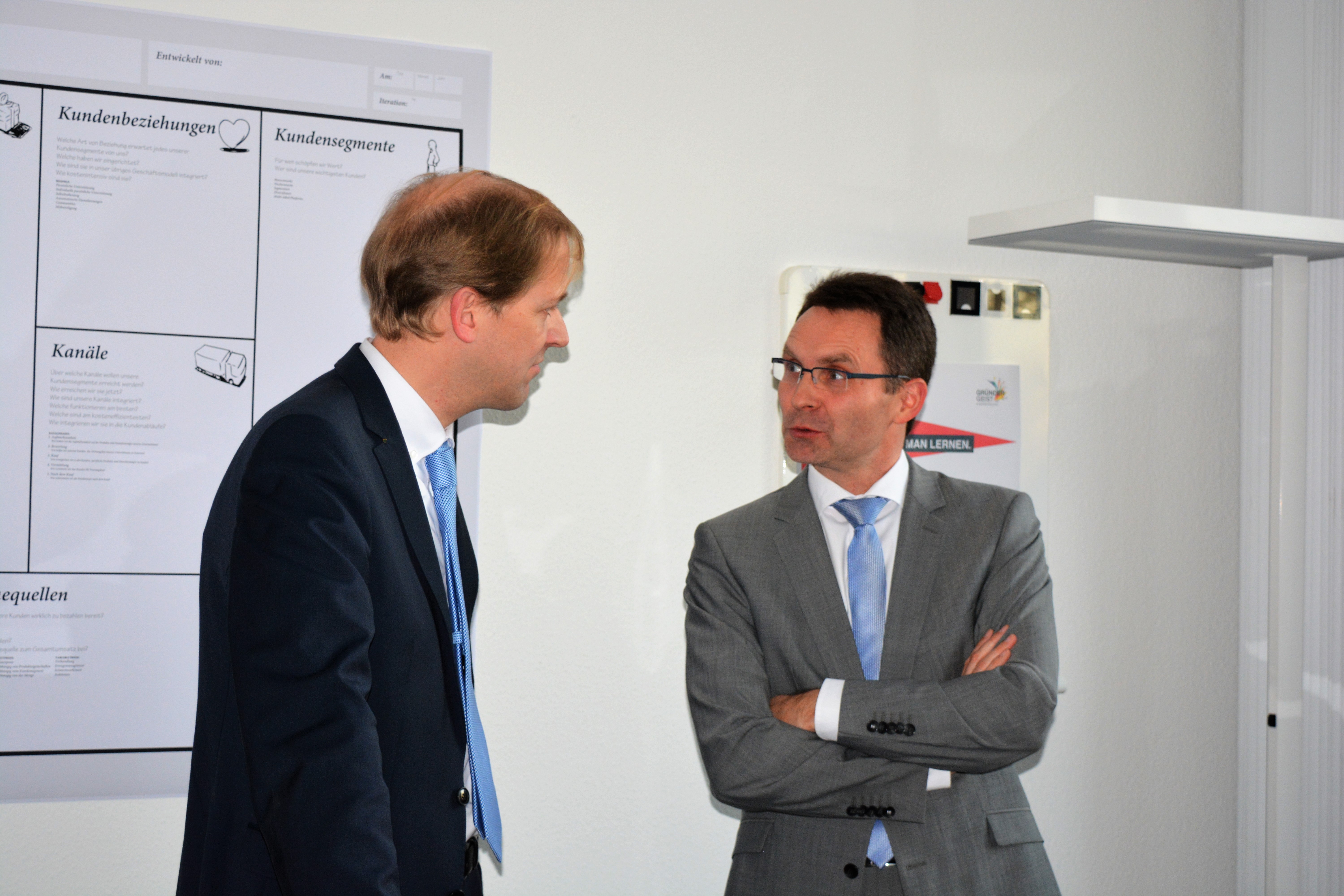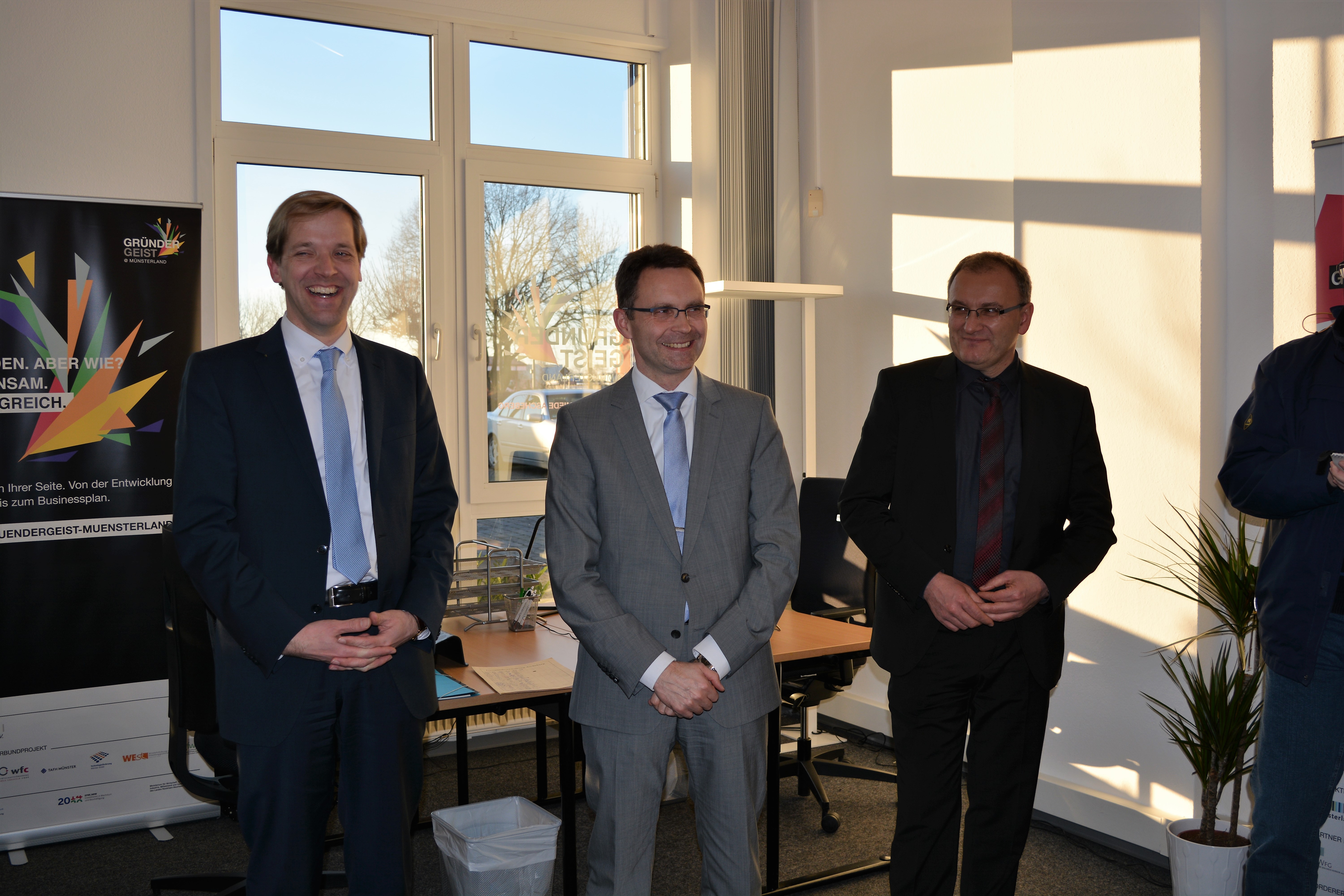 Dazu eröffneten der Landrat Dr. Christian Schulze Pellengahr sowie der Bürgermeister der Gemeinde Ascheberg, Dr. Bert Risthaus, gemeinsam mit dem Geschäftsführer der wfc Wirtschaftsförderung Kreis Coesfeld, Dr. Jürgen Grüner, am Montagnachmittag die Gründerschmiede.