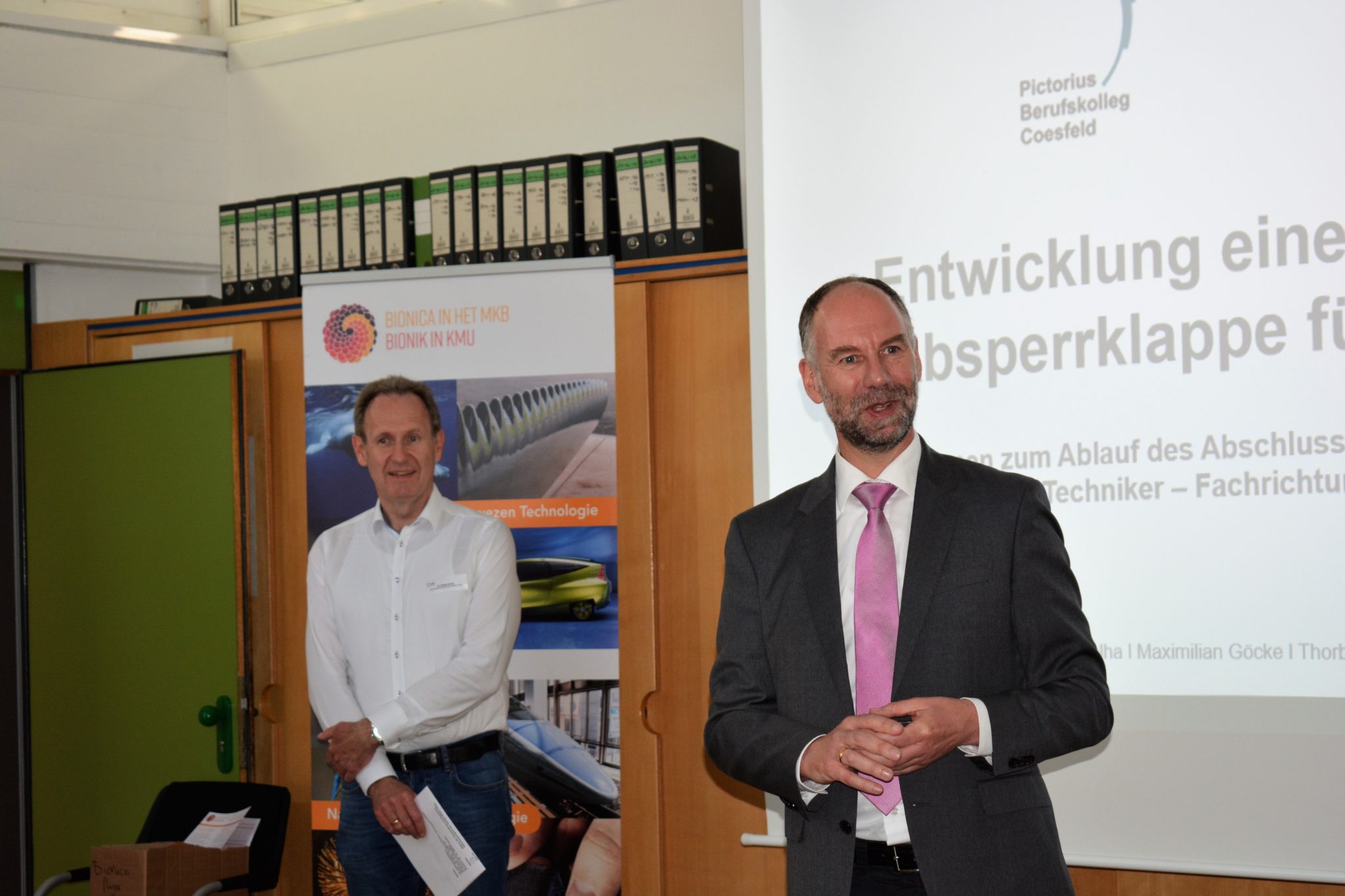 Mit offenen Augen und gespitzten Ohren jedenfalls hatten sich rund 50 Teilnehmer am Donnerstag (19. April) im Lehrerzimmer des Pictorius-Berufskollegs in Coesfeld zum wfc-InnovationsIMPULS eingefunden, um zu erfahren, wie Bionik die regionalen Unternehmen vorantreibt. Die Veranstaltung der wfc fand bereits zum zweiten Mal im Rahmen der Technik Expo Münsterland des Pictorius Berufskollegs statt.